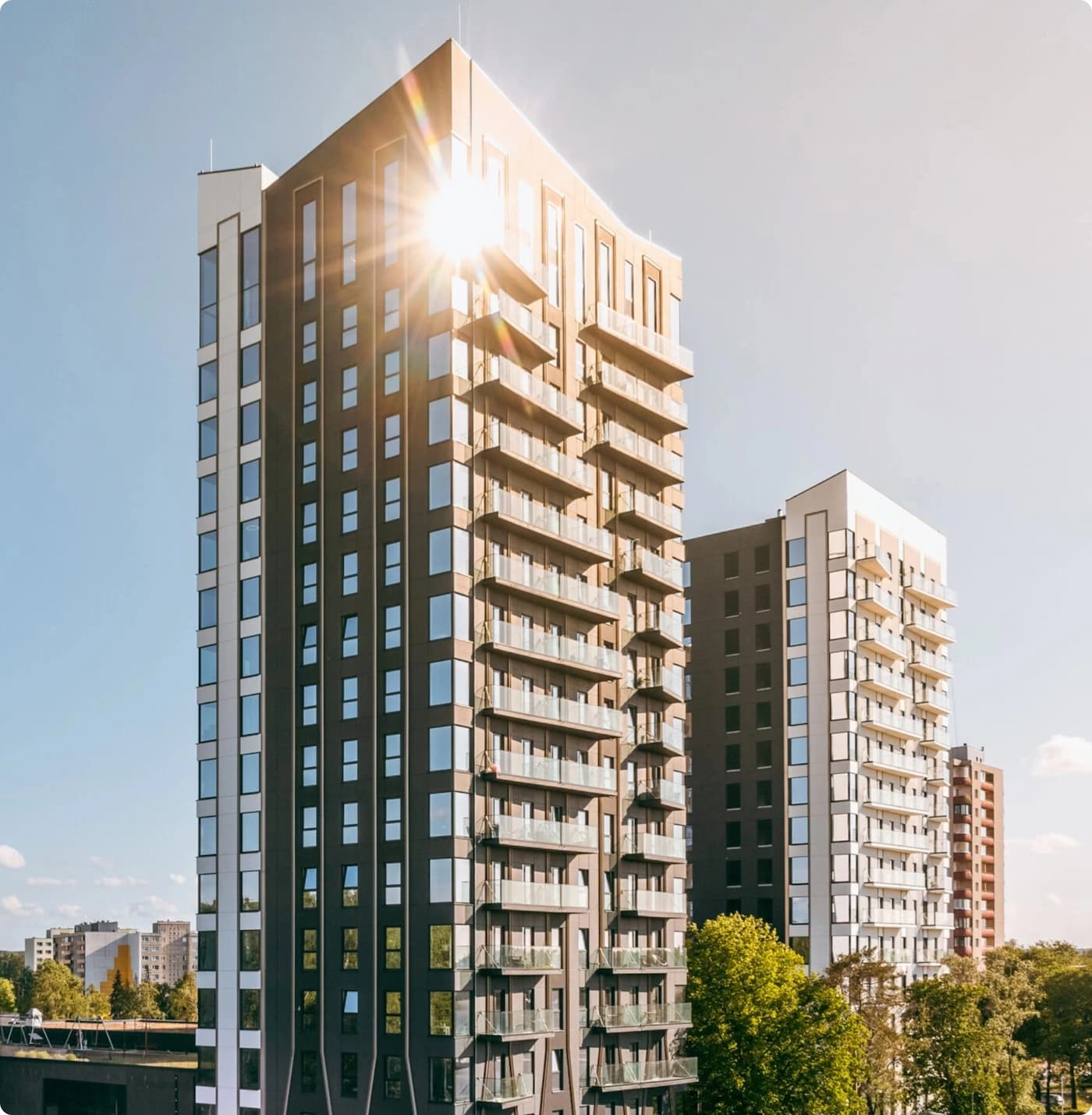 Nordic Cross is a 100,000 m² residential development near Kyiv designed to bring 1,600 Ukrainian families safely home from displacement in the Nordics and the UK. The project comprises three distinct building types offering flexibility in design and density while maintaining a cohesive architectural language.